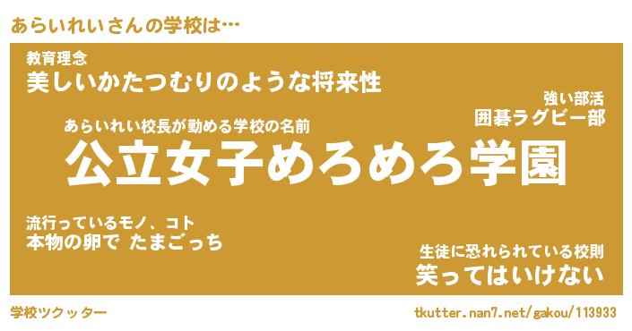 | 伝説のあだ名 | 『封印されしスナイパーあらいれい』 |