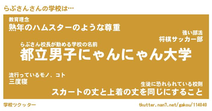 | ヘコむあだ名 | 『らぶもー』『つくし』『らぶぷりん』 |