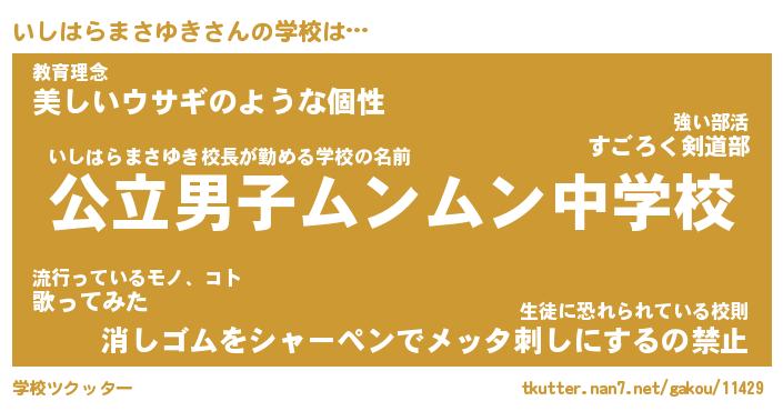 | ヘコむあだ名 | 『いしにゅー』『豆乳』『いしっちょ』 |