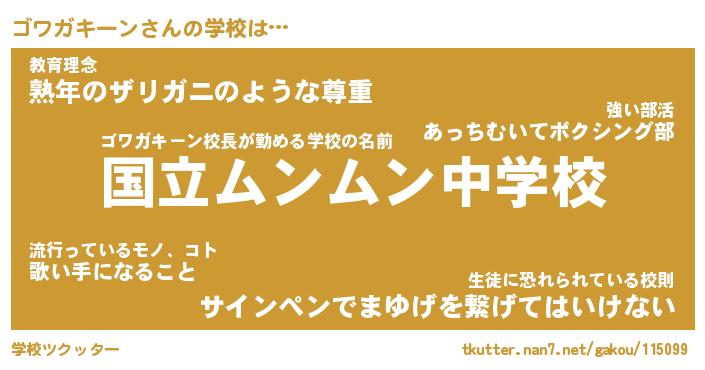 | 男性向けラノベタイトル風あだ名 | 『ゴワガキーンの憂鬱』 |