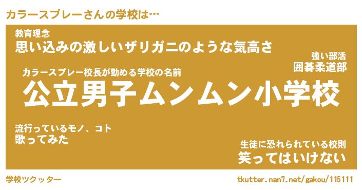 | 男性向けラノベタイトル風あだ名 | 『カラースプレーの憂鬱』 |