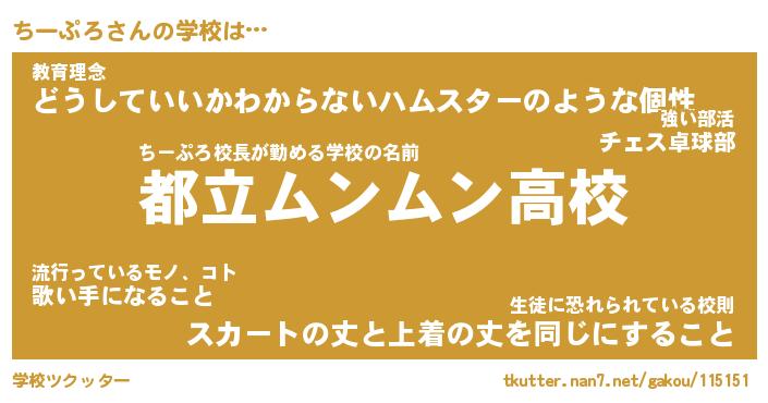 | 男性向けラノベタイトル風あだ名 | 『ちーぷろの憂鬱』 |