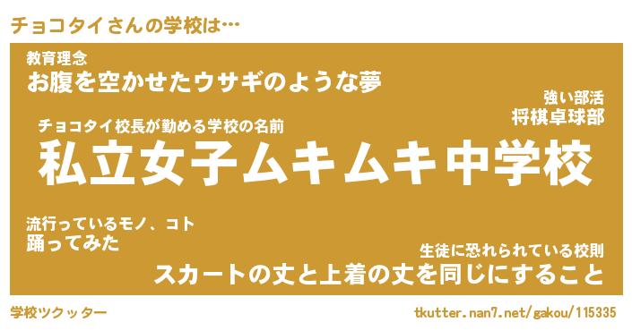 | 男性向けラノベタイトル風あだ名 | 『チョコタイアートオンライン』 |
