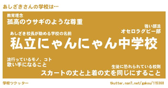| ヘコむあだ名 | 『あしもー』『つくし』『あしお』 |