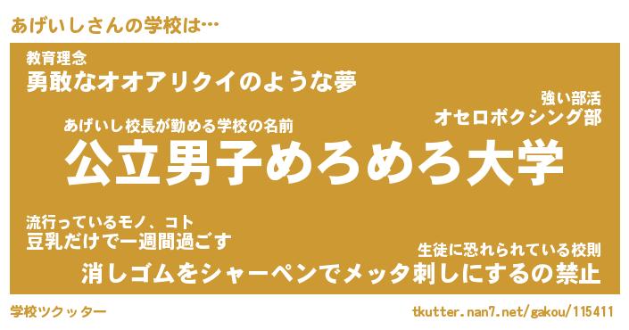 | 意味不明あだ名 | 『ペロリンあげいし』『永久保存あげいし』 |