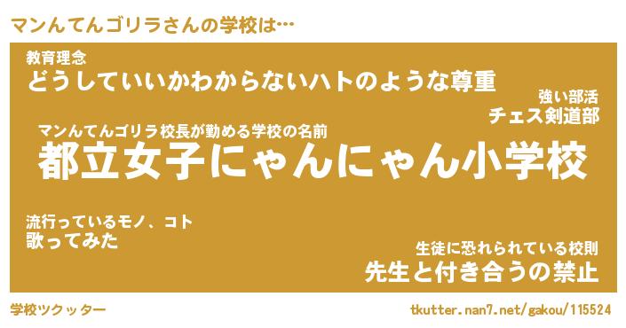 | 男性向けラノベタイトル風あだ名 | 『マンンテンゴリラアートオンライン』 |