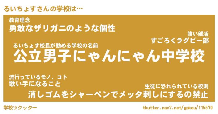 | 男性向けラノベタイトル風あだ名 | 『るいちょすの憂鬱』 |