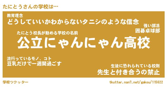 | ファンタジー風あだ名 | 『タニフェル』『エターナルタニトウー』 |