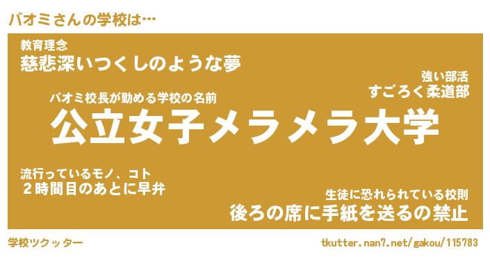 | 意味不明あだ名 | 『ペロリンバオミ』『バオミフォーエバー』 |