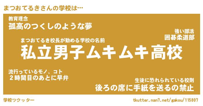 | 男性向けラノベタイトル風あだ名 | 『まつおてるきの憂鬱』 |