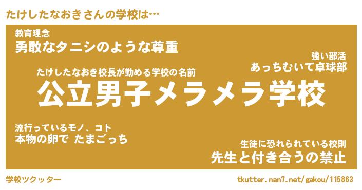 | 男性向けラノベタイトル風あだ名 | 『たけしたなおきの憂鬱』 |