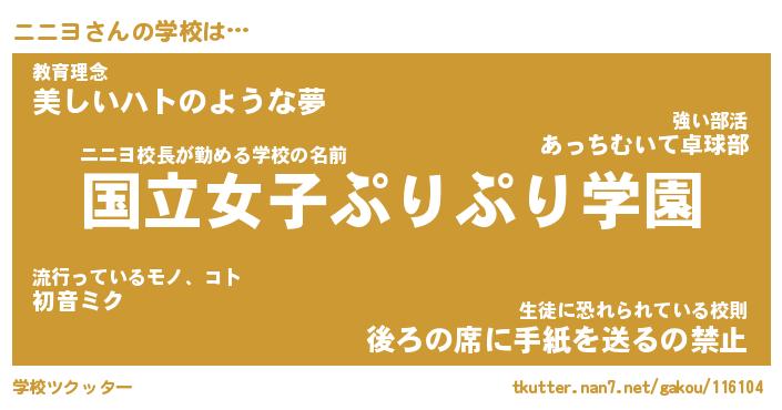 | 肩書あだ名 | 『ニニヨ社長令嬢』『ニニヨ大統領』 |
