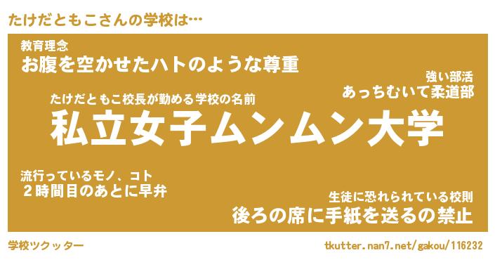 | ヘコむあだ名 | 『たけにゅー』『酢こんぶ』 |