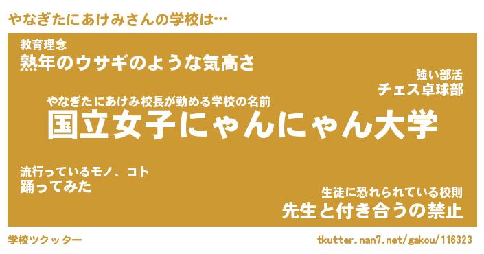 | ヒーロー風カッコイイあだ名 | 『スーパーヤナギタニアケミ』 |