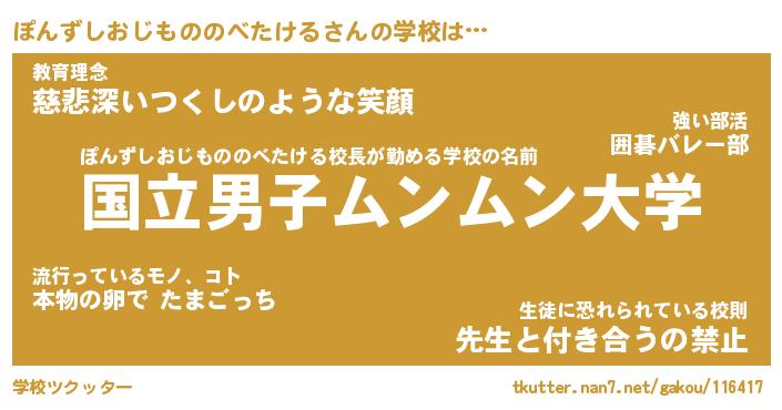 | 男性向けラノベタイトル風あだ名 | 『ぽんずしおじもののべたけるの憂鬱』 |
