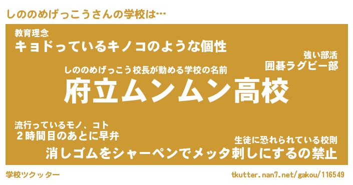 | 男性向けラノベタイトル風あだ名 | 『しののめげっこうの憂鬱』 |