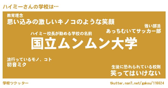 | 男性向けラノベタイトル風あだ名 | 『ハイミーの憂鬱』 |