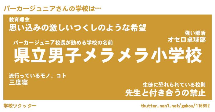| 先生 | パーカージュニア先生が勤める学校名『都立猫耳中学校』 |