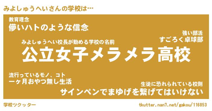 | ピコ太郎風あだ名 | 『ミコ次郎』『ピミ史郎』『ミヨ五郎』 |