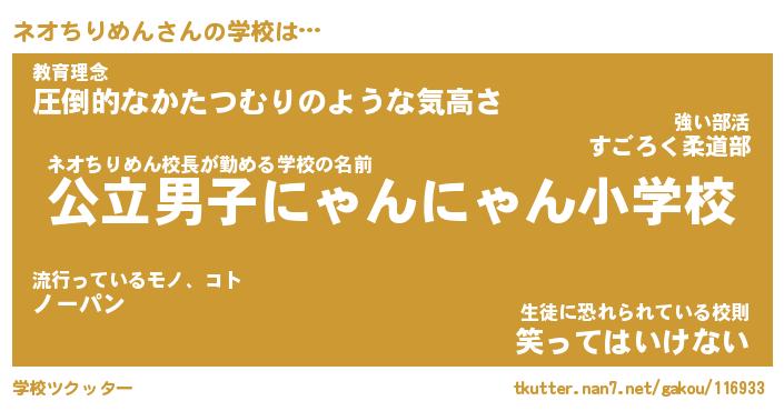 | 男性向けラノベタイトル風あだ名 | 『ネオちりめんの憂鬱』 |