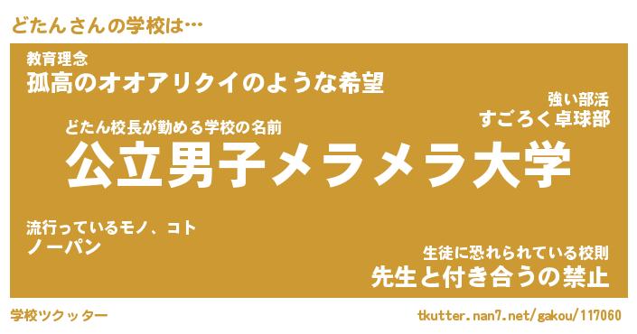 | 男性向けラノベタイトル風あだ名 | 『どたんの憂鬱』 |