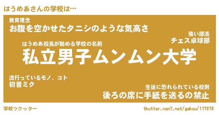 | 意味不明あだ名 | 『ペロリンはうめあ』『永久保存はうめあ』 |
