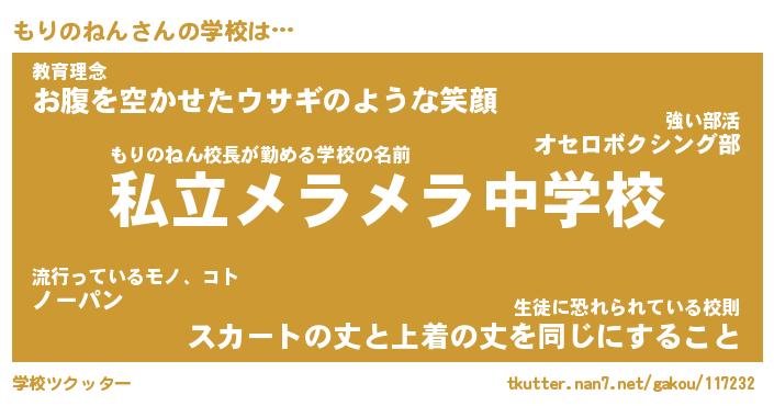 | 男性向けラノベタイトル風あだ名 | 『もりのねんの憂鬱』 |
