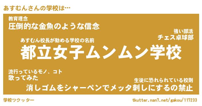 | 意味不明あだ名 | 『ペロリンあすむん』『永久保存あすむん』 |
