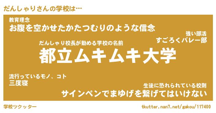 | 男性向けラノベタイトル風あだ名 | 『だんしゃりの憂鬱』 |