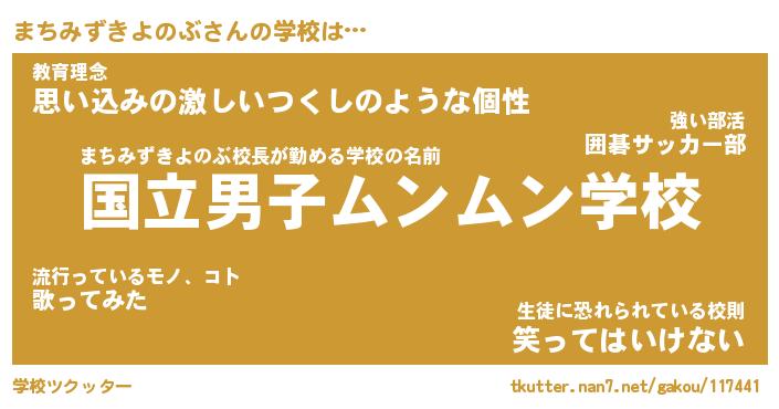 | 男性向けラノベタイトル風あだ名 | 『まちみずきよのぶの憂鬱』 |