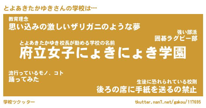 | ヘコむあだ名 | 『とよにゅー』『つくし』『とよっ子』 |