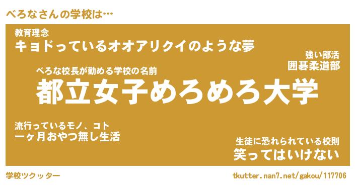 | ヒーロー風カッコイイあだ名 | 『スーパーベロナ』『ウルトラべろなマン』 |