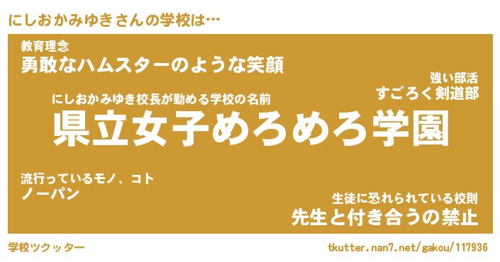 | ファンタジー風あだ名 | 『ニシフェル』『ファントムニシス』 |