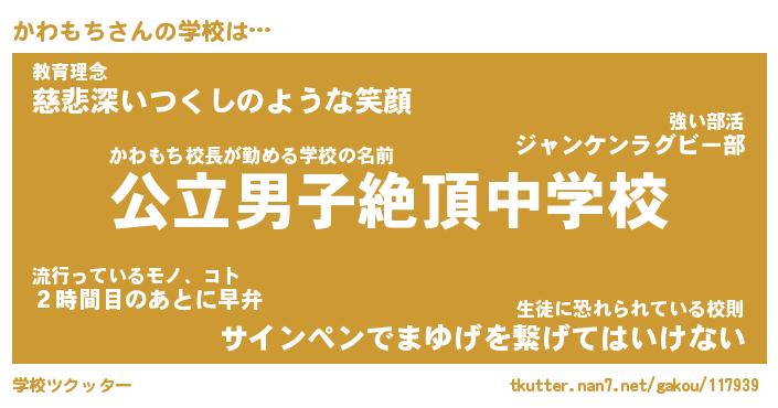 | かわもち先生が勤める学校名『県立肉球中学校』 |