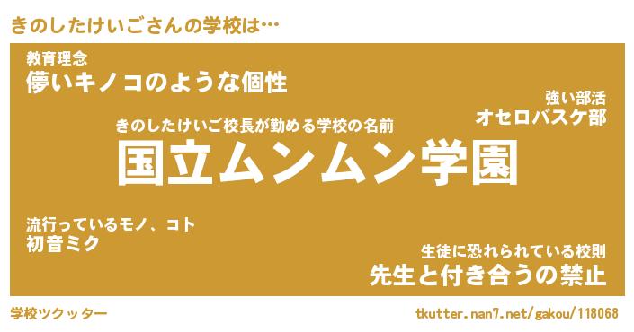 | 男性向けラノベタイトル風あだ名 | 『きのしたけいごの憂鬱』 |
