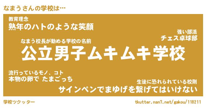| ヒーロー風カッコイイあだ名 | 『スーパーナマウ』『ウルトラなまうマン』 |