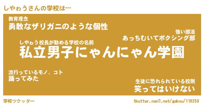 | 男性向けラノベタイトル風あだ名 | 『しやゎうの憂鬱』 |