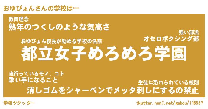| ヘコむあだ名 | 『おゆっふぃ~』『つくし』『おゆお』 |