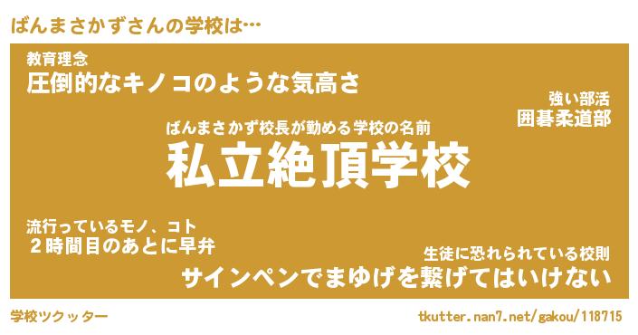 | 男性向けラノベタイトル風あだ名 | 『ばんまさかずの憂鬱』 |