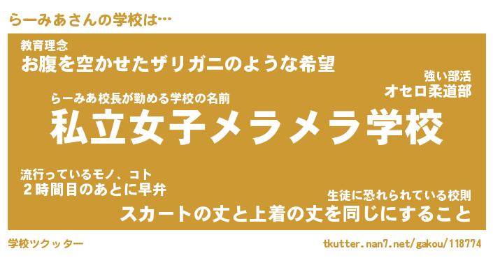 | 意味不明あだ名 | 『ペロリンらーみあ』『永久保存らーみあ』 |