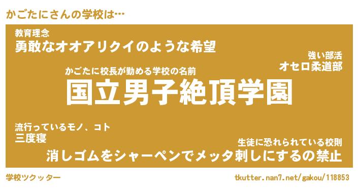 | ファンタジー風あだ名 | 『カゴフェル』『エターナルカゴタニー』 |