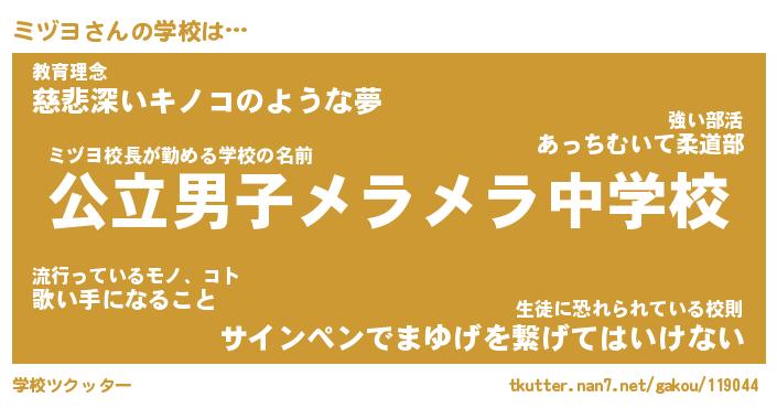 | ピコ太郎風あだ名 | 『ミコ次郎』『ピミ二郎』『ミヅ三郎』 |