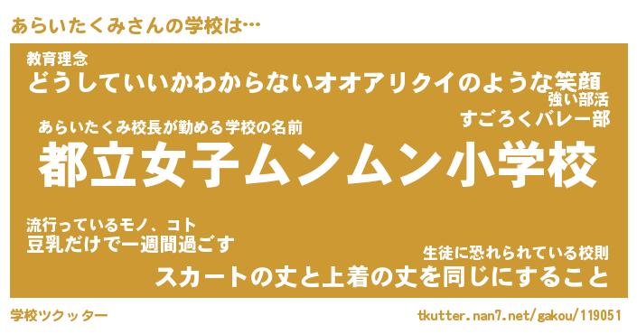 | 肩書あだ名 | 『あらいたくみ店長』『あらいたくみ担任』 |