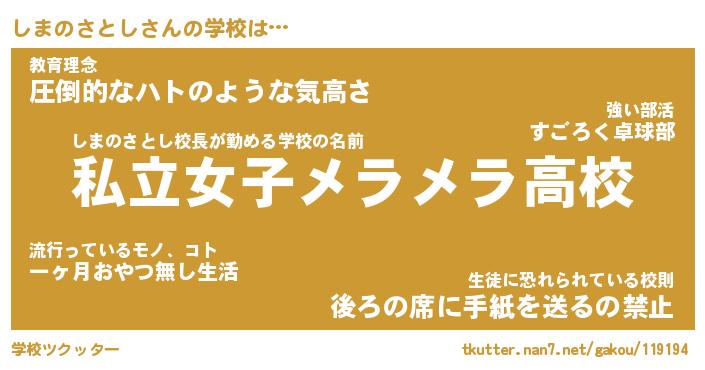 | ヘコむあだ名 | 『しまにー』『つくし』『しまぷりん』 |