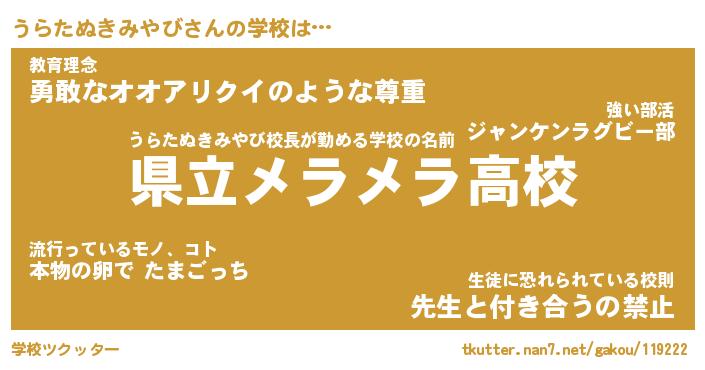 | 胡散臭い通販商品みたいなあだ名 | 『必ず成功するブレスレット…その名も「うらたぬきみやび」』 |