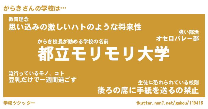 | 男性向けラノベタイトル風あだ名 | 『からきの憂鬱』 |