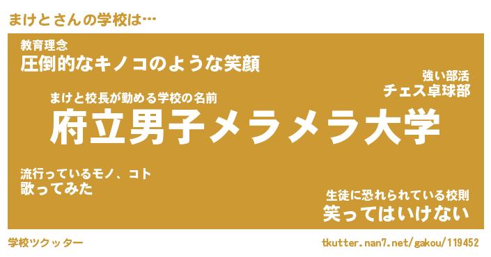 | ヒーロー風カッコイイあだ名 | 『スーパーマケト』『ウルトラまけとマン』 |