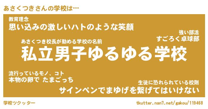 | 男性向けラノベタイトル風あだ名 | 『あさくつきの憂鬱』 |