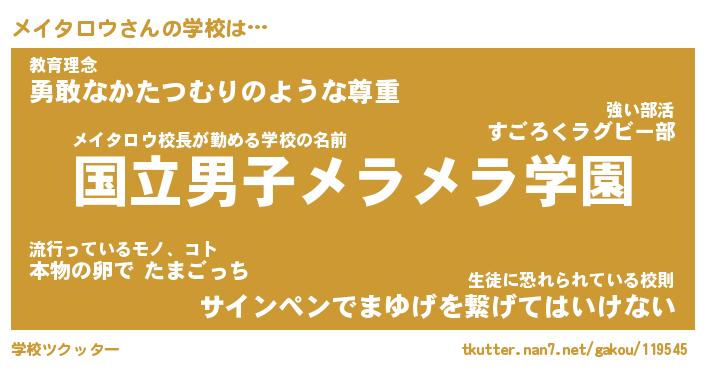 | 肩書あだ名 | 『メイタロウ社長』『メイタロウ国家主席』 |