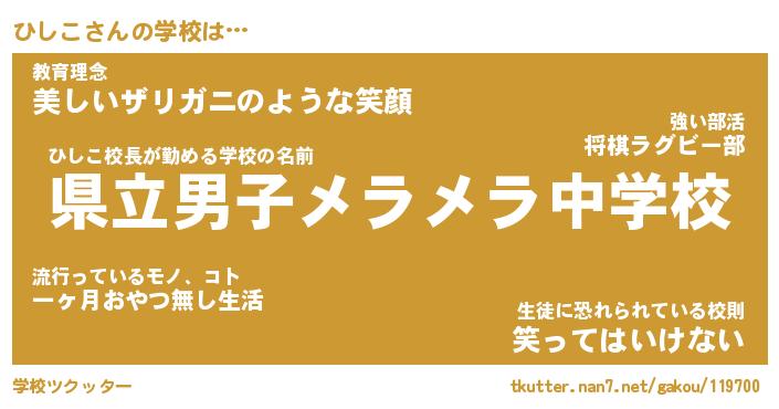 | ヒーロー風カッコイイあだ名 | 『スーパーヒシコ』『ウルトラひしこマン』 |